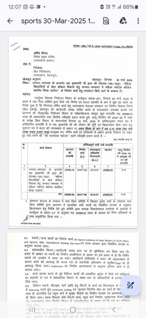 Uttarakhand: चंपावत में महिला स्पोर्ट्स कॉलेज का शासनादेश जारी, खेल मंत्री ने जताया मुख्यमंत्री का आभार