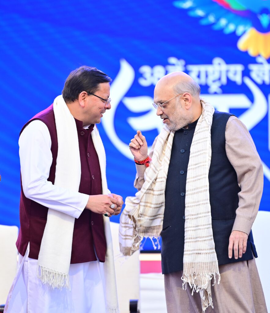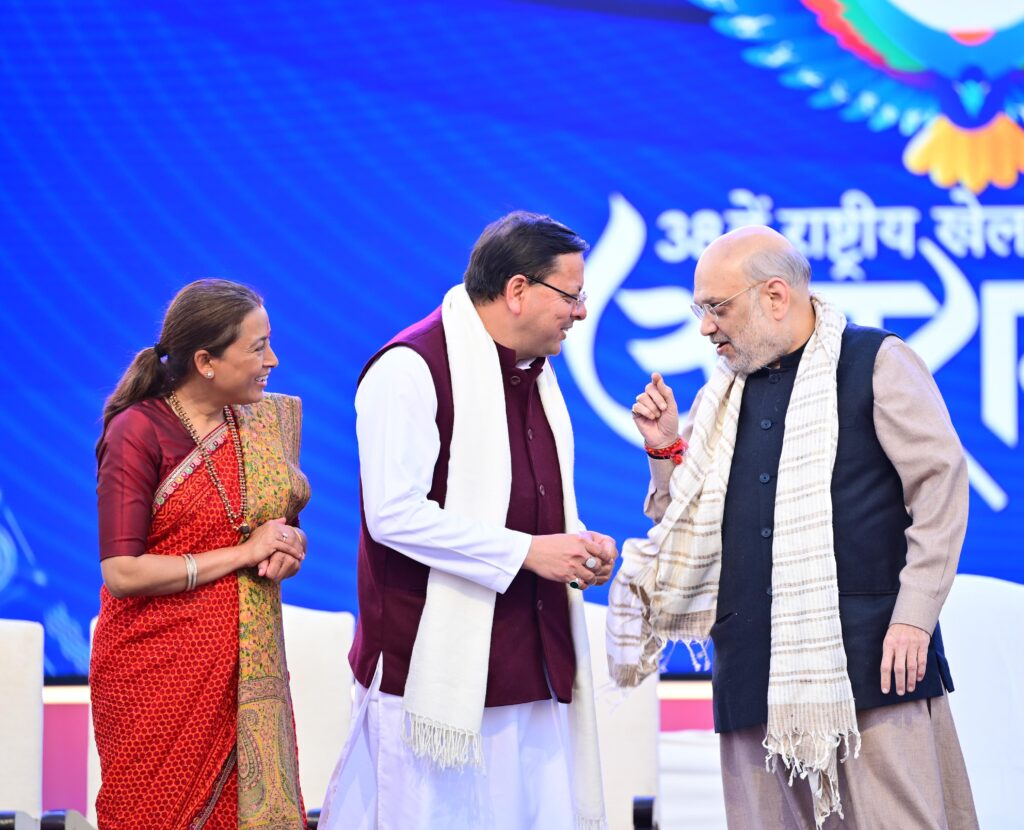 केंद्रीय गृह मंत्री अमित शाह ने उत्तराखण्ड के चारों धामों के देवी देवताओं को प्रणाम करते हुए कहा कि मुख्यमंत्री श्री धामी ने उत्तराखंड के हर जिले में खेल इंफ्रास्ट्रक्चर तैयार हो गया है। उन्होंने कहा मुख्यमंत्री ने देवभूमि को राष्ट्रीय खेलों के नक्शे पर 25वें स्थान से 7वें स्थान पर लाने का कार्य किया है। राष्ट्रीय खेलों में उत्तराखंड के विजेता खिलाड़ियों ने देवभूमि को खेल भूमि बनाया है। केंद्रीय गृह मंत्री ने सभी उत्तराखंड के विजेता खिलाड़ियों को शुभकामनाएं देकर उनके उज्ज्वल भविष्य की कामना की।